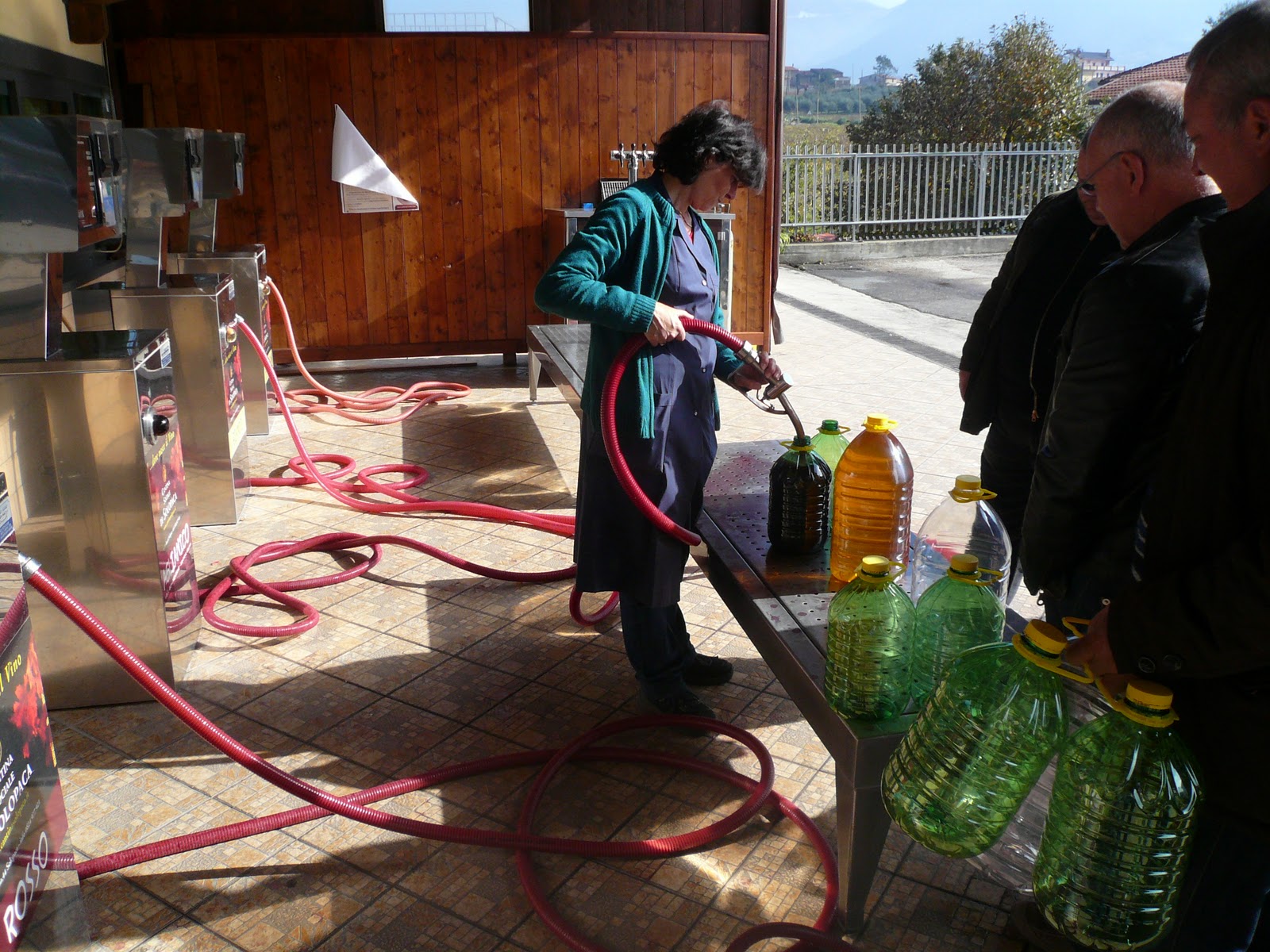 Okay so we heard about this winery in Solopaca. Unfortunately, it is only open on Saturdays. Since Howard left for CA today, we pilled in the Hatteroth's car for a family outing. It was a pretty drive through the country. The leaves were actually starting to change out there so it finally looked like fall here. Many of the tree were a pretty orange but when we got up close we realized they had actual oranges on them and no leaves! Funny! The winery was the actual manufacturing plant for the wine. They had many different bottles to choose from. It was a typical wine store. They did sell wine in damijohns which we were super excited about. For 6 euros, you could get a 5 liter damijohn of wine. We thought it was a great deal and planned on getting two each. The neatest part of the winery is the fact that they fill up bottles using gas pumps! They greet you before you enter the store. So many customers just pulled their cars up to the pumps and then woman filled the up. You could pick different types of wine and whether you wanted white or red wine. It was the coolest thing! So many people had the 24 liter damijohn in their car and pulled up to the pump to fill up! We really wanted the damijohns but we also wanted to have the lady fill something for us. Then we found out you could get a damijohn filled. We were so excited. It seems so silly, but it was so cool to stand at the pump and have the lady fill our bottle with wine. An Italian, who spoke English, told us we had stumbled upon a great place. He said it was the best tasting wine around! He told us we were fortunate to have found this place! We agreed. This was a really cool experience! Then we went in to pay. The wine was 4 euros and the damijohns were 2 euros each. Since we both got two 5 liter damijohns, we expected to pay 24 euros. When the man rang us up, it only came to 14 euros!! We were surprised, shocked and not sure what to do. So we just decided to hide our smiles and get in the car and go!! Janelle, James and I were so excited about our trip and we have not even tasted one sip of wine! If it is as good as the man said, this will be a fabulous day!!